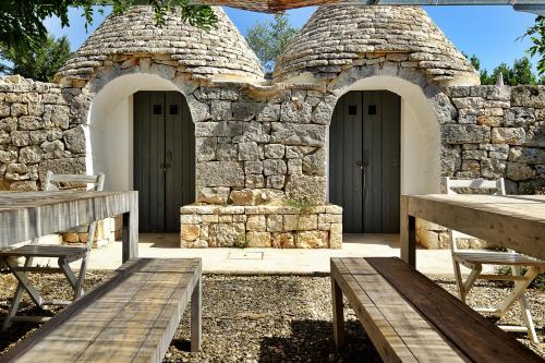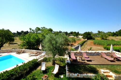 Masseria Trulli e Vigne酒店提供私人林地、游泳池以及阳光露台,坐落在萨兰托(Salento)的Valle d'Itria地区中心。