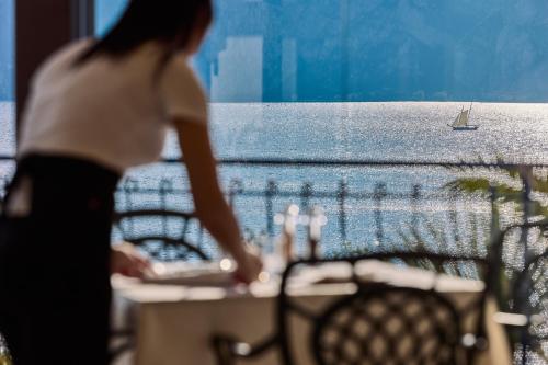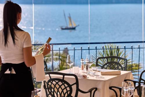 Capri Hotel酒店及其餐厅由同一家族几代人经营。餐厅宽敞明亮,设有大型湖景窗户。