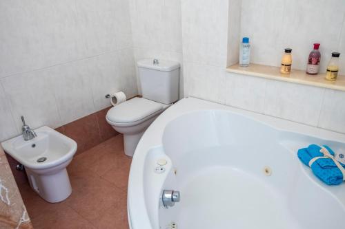 这家空调别墅配有4间卧室、起居室、带冰箱和咖啡机的设施齐全的厨房以及4间带坐浴盆和淋浴设施的浴室。4间浴室配有热水浴池,也拥有吹风机,提供毛巾和床上用品。