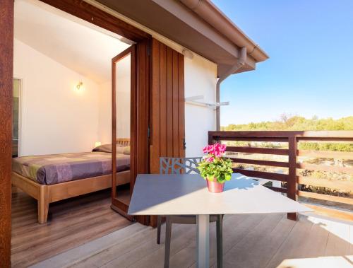 房间配有阳台、空调、平板电视以及带坐浴盆和吹风机的私人浴室。
