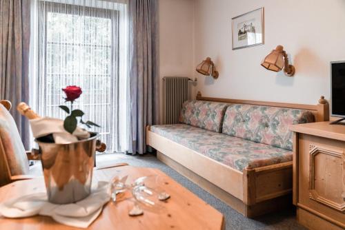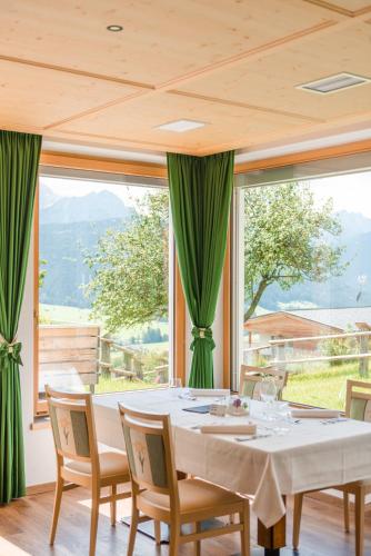酒店每天早晨供应甜味和咸味的早餐,包括新鲜出炉的蛋糕。餐厅供应南蒂罗尔特色的午餐和晚餐。