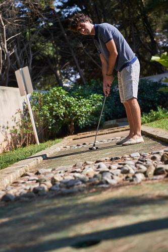 There is a free shuttle service to the resort's private beach with windsurfing, canoeing and sailing facilities. Facilities for children and teens include play areas, video games and a theatre.