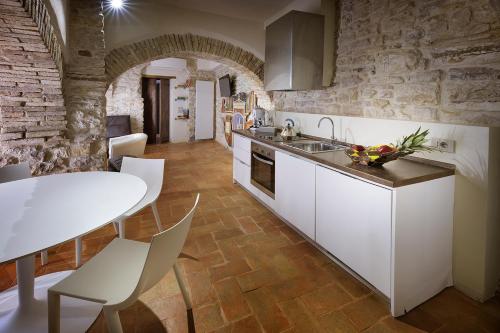 公寓铺有石墙和木横梁天花板,提供带壁炉的起居室、带烤箱和洗碗机的设备齐全的厨房、平板电视以及覆盖各处的免费WiFi。