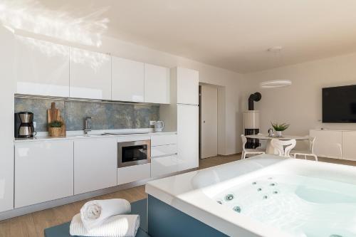 这家公寓提供2间卧室、1间浴室、床上用品、毛巾、带卫星频道的平板电视、设施齐全的厨房以及湖景露台。1间浴室提供淋浴设施和吹风机。