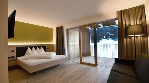 The spacious rooms overlook the Plan de Corones mountain or Valle di Casies. Each includes a TV, a sofa, and fully equipped bathroom.