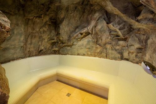 Public areas include a garden with playground and small wooden house, and a terrace with sun loungers. Sessions in the hot tub, infrared sauna and solarium can be booked at reception.