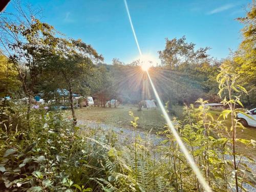 Camping RioRequesa位于Campore,享有花园景,提供季节性室外泳池、花园、露台和酒吧。