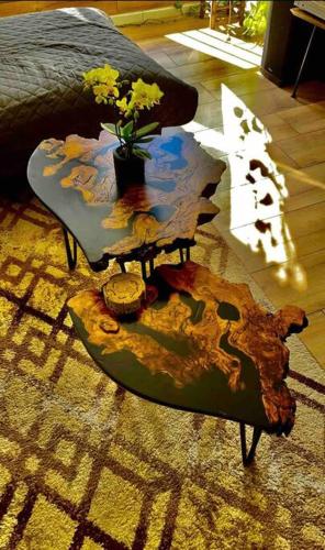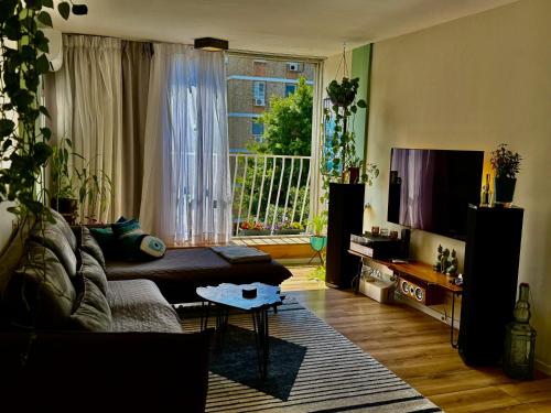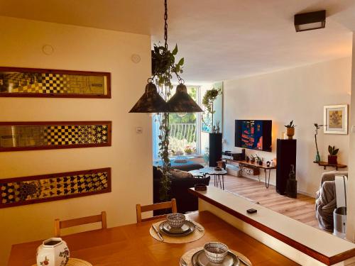 这家空调公寓配有2间卧室、起居室、带冰箱和咖啡机的设施齐全的厨房以及1间带淋浴设施和吹风机的浴室。这家公寓也提供休息区和1间浴室。