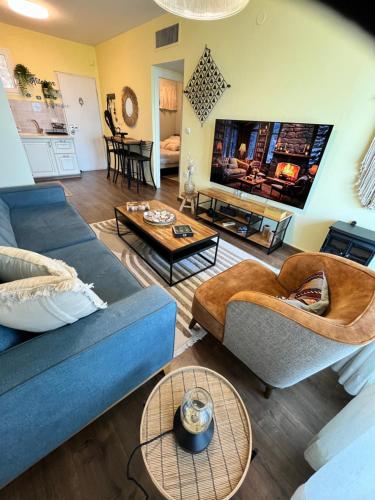 这家空调公寓配有2间卧室、起居室、带冰箱和咖啡机的设施齐全的厨房以及1间带淋浴设施和免费洗浴用品的浴室。这家公寓还提供平板电视以及1间带吹风机的浴室。
