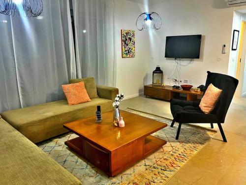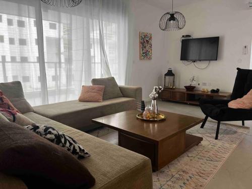 New apt with a big balcony at karmei gat位于Qiryat Gat,提供带免费WiFi的市景客房,配备共用休息室、露台和餐厅。这家公寓配备免费私人停车位和ATM取款机。