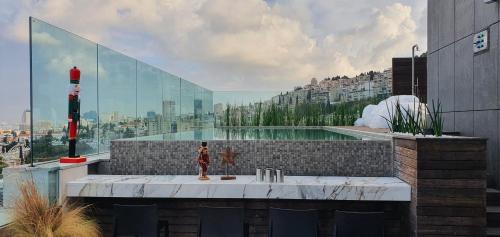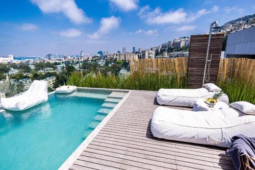 SERENE - Infinity Cview pool - 4 bedrooms Luxury Penthouse位于海法,配备带免费WiFi的市景客房,配有户外游泳池、露台和酒吧。这家公寓配备免费私人停车位。客人可以在周边地区体验骑行和乒乓球等活动。