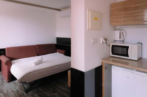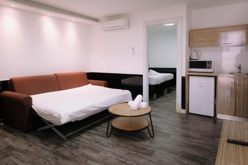 套房拥有当代风格的设计,配有瓷砖地板和现代家具。每间套房均设有起居区和带微波炉的小厨房。房内还配有液晶卫星电视。