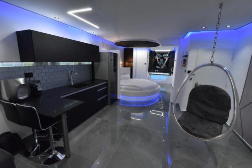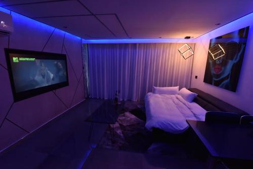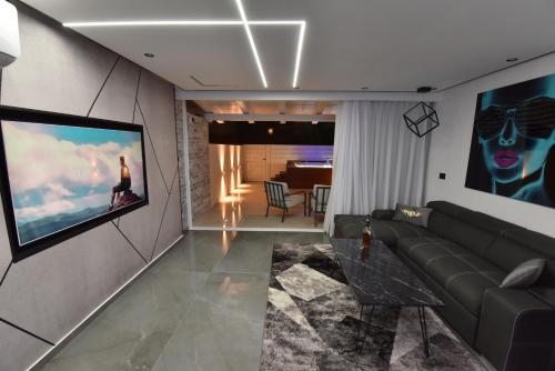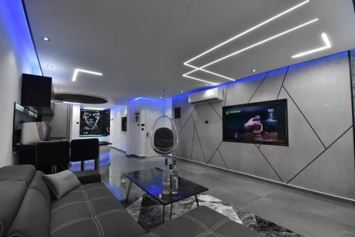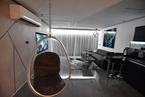 这家空调公寓配有1间卧室、起居室、带冰箱和咖啡机的设施齐全的厨房以及1间带淋浴设施和热水浴池的浴室。这家公寓还配备平板电视以及1间带吹风机的浴室。