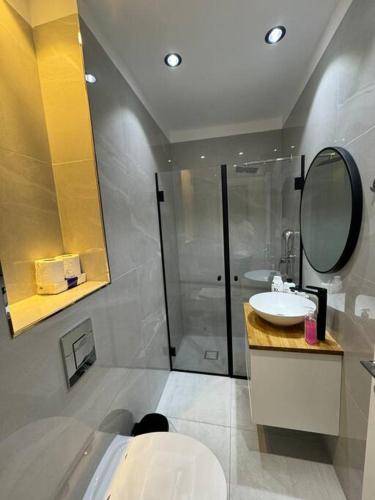 这家空调1卧室公寓提供1间浴室,配有浴缸或淋浴设施。这家公寓也提供1间浴室。