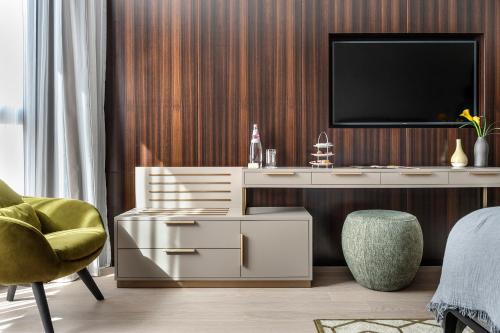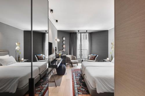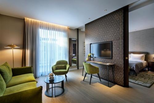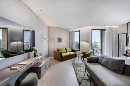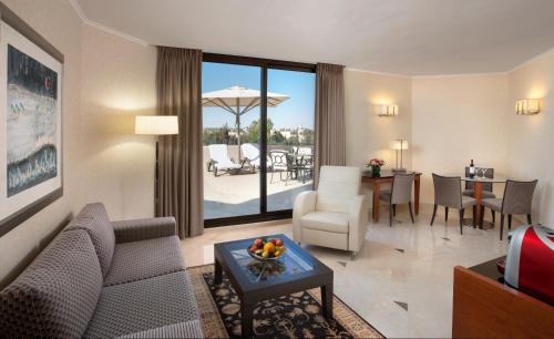 The Inbal Hotel is located in Jerusalem’s city center, a short walk from both modern Jerusalem and the Old City. The hotel offers free Wi-Fi in the entire property. The Inbal Jerusalem Hotel has excellent leisure and spa facilities, modern 24/7 fitness center, massage rooms and saunas. The property offers a semi-Olympic heated lap pool, toddler pool uncovered throughout the summer, and covered in the winter. A pool lift is available for the disabled. The hotel is built in traditional Jerusalem stone, and offers luxurious rooms and suites with an LCD TV. Some rooms offer panoramic views over the old city. The club lounge offers drinks and light meals throughout the day to guests staying on the Premium floors. It has a huge balcony overlooking the Old City. The Inbal Jerusalem Hotel has the service of Electric Vehicle Charging Station.