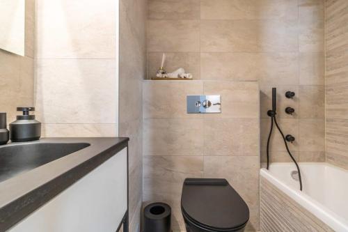 这家空调公寓配有2间卧室、起居室、带冰箱和电热水壶的设施齐全的厨房以及2间带浴缸和吹风机的浴室。这家公寓也拥有2间浴室。