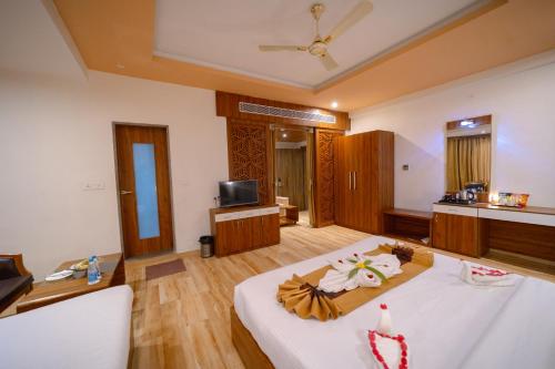 Gold Nest Rubystone Heritage位于乌代浦,距离加格狄许寺庙有19公里,提供季节性室外泳池、免费私人停车位、花园和露台。这家住宿配备客房服务,还为客人提供餐厅、保龄球馆和儿童游乐区。住宿配备晚间娱乐和24小时前台。