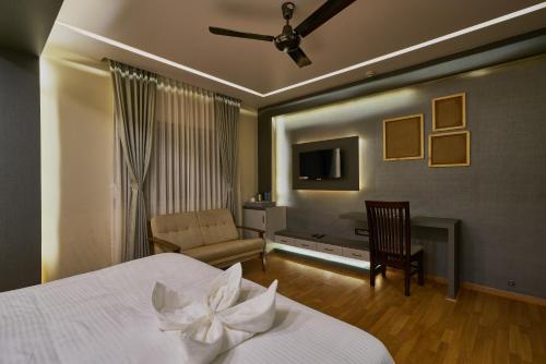 Tranquil La Casa位于浦那,距离普纳大学有2.5公里,提供露台,享有市景。这家舒适型酒店配备共用休息室,提供带免费WiFi和私人浴室的空调客房。住宿为客人提供客房服务、礼宾服务和行李寄存服务。