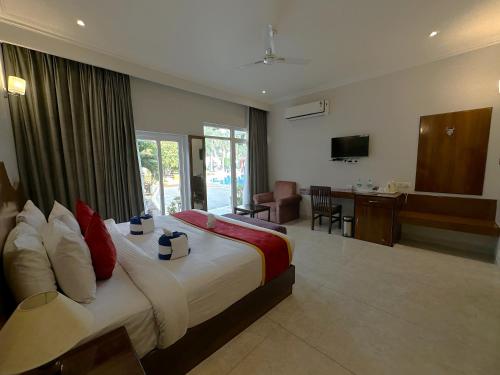 A S Hotels坐落于克久拉霍,距离Lakshmana Temple有8分钟步行路程,配备户外游泳池、免费私人停车位、花园和共用休息室。这家尊贵型酒店提供餐厅。住宿提供24小时前台、机场交通服务、客房服务以及免费WiFi。