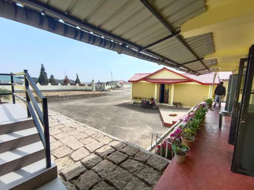 这家旅馆的部分房间配有私人浴室,还享有山景。