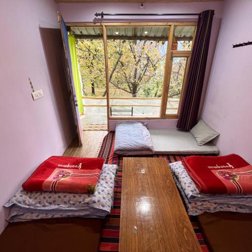 这家青旅的客房拥有衣柜、床上用品和市景阳台。Sukoon Stays Manali的客房配有休息区。