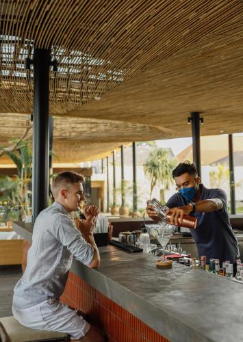 客人可以在The Beach Restaurant餐厅一边享用自助早餐,一边欣赏日出的美景。这家海滨餐厅还在其室内或室外用餐区供应亚洲和国际佳肴。在Byrdhouse Bar酒吧,客人可一边品尝鸡尾酒,一边在按摩浴缸里远眺大海放松身心。