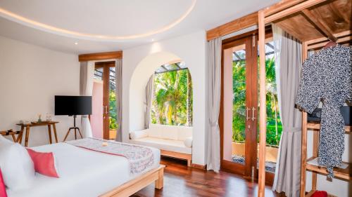 客房拥有现代和传统相融合的家具装饰,设有1台平面卫星电视、1个休息区、1台冰箱和1个迷你吧,还提供1个保险箱、蚊帐和隔音设施。连接浴室设有1间淋浴、1个浴缸和拖鞋。客人可以在露台上放松身心,并在客房观赏花园景致。