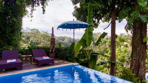 Chalet Rabina位于乌布,提供带免费WiFi的山景客房,配备户外游泳池、花园和露台。住宿距离乌布皇宫有4.3公里,配备客房服务。