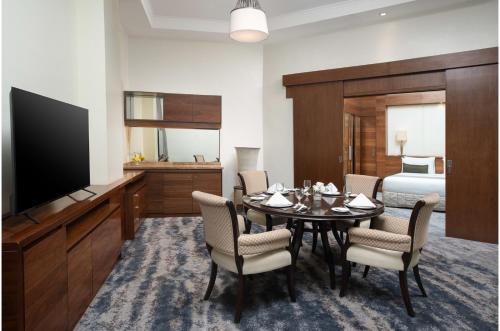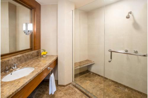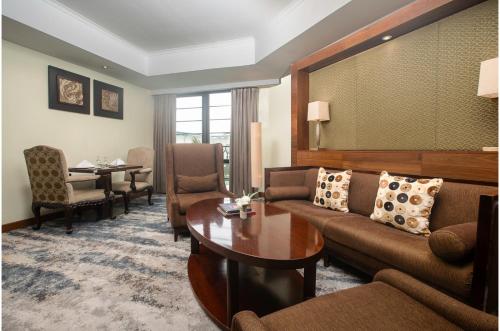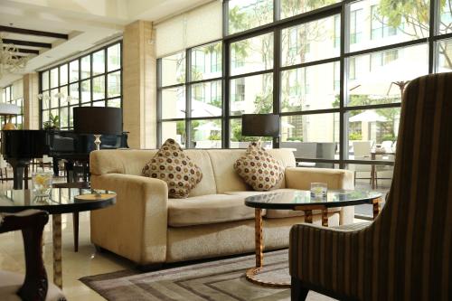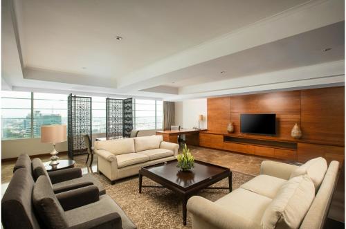 The hotel features a fitness center with a pool view and in-room massage services. Free WiFi is accessible throughout the hotel. Aryaduta Medan offers spacious air-conditioned rooms with a contemporary yet classy carpeted design. Each room is equipped with a flat-screen TV, a safe, seating area, and tea/coffee-making facilities. The bathrooms come with showers and complimentary toiletries. Some room types offer a larger seating area with a sofa.