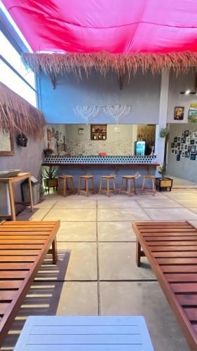 Blij Ei - Land Hostel坐落于卡里蒙贾瓦,配有花园、酒吧和免费WiFi,距离尼瓦娜海灘(Nirwana Beach)有17分钟步行路程,距离班楚蘭海灘(Pancuran Beach)有1.6公里。