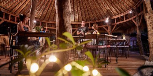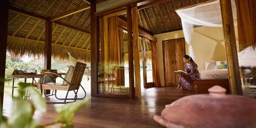 茅草屋顶简易别墅拥有现代化的内饰和一个户外露台。客人可以在秋千床或吊床上放松身心。部分客房配有风扇,而其他客房则配有空调。半户外浴室提供独特的石头和竹子装饰。