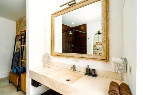 这家公寓提供1间卧室、1间浴室、床上用品、毛巾、平板电视、用餐区、设施齐全的厨房以及池景露台。这家空调公寓还配备休息区以及1间带坐浴盆和淋浴设施的浴室。