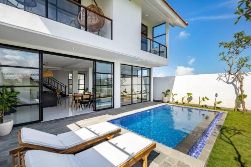 2BR Pool Villa Alba in Canggu, Rice field view享有池景,提供户外游泳池和阳台,距离贝拉瓦海滩约有2.9公里。这家自助式别墅拥有私人泳池、花园和免费私人停车位。