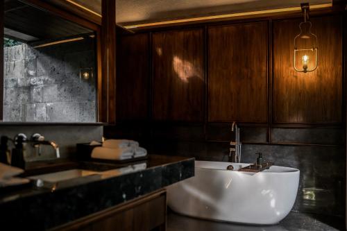 Janjisurga by Ekosistem坐落于Tumbak Bayuh,配备免费WiFi,配有游泳池、免费自行车和花园,享有池景。内部提供私人停车位。