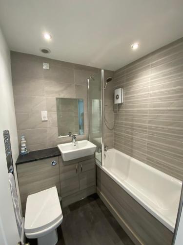 这家公寓配备2间卧室、带冰箱和烤箱的厨房、平板电视、休息区以及1间带浴缸的浴室。这家公寓也为客人提供1间浴室。