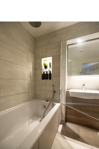 这家公寓配有2间卧室、起居室、带冰箱和咖啡机的设施齐全的厨房以及1间带淋浴设施和免费洗浴用品的浴室。1间浴室配有浴缸,也提供吹风机,提供毛巾和床上用品。