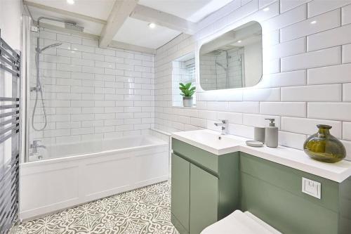 这家度假屋配有2间卧室、带卫星频道的平板电视、带冰箱和洗碗机的设施齐全的厨房、洗衣机以及1间带淋浴设施的浴室。1间浴室配有浴缸,也提供免费洗浴用品,提供毛巾和床上用品。