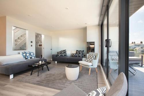 这家度假屋配有蓝光播放机,提供带冰箱、洗碗机和烤箱的厨房、带休息区和用餐区的起居室、3间卧室以及3间带淋浴设施和浴缸的浴室。这家度假屋还配备平板电视以及3间带免费洗浴用品的浴室。
