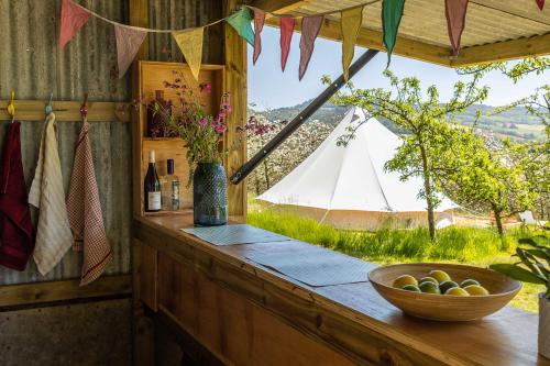 住宿内部配备露台。客人可以在Bowhayes Farm - Camping & Glamping - Bell Tents - Cider Orchard附近体验徒步和垂钓。