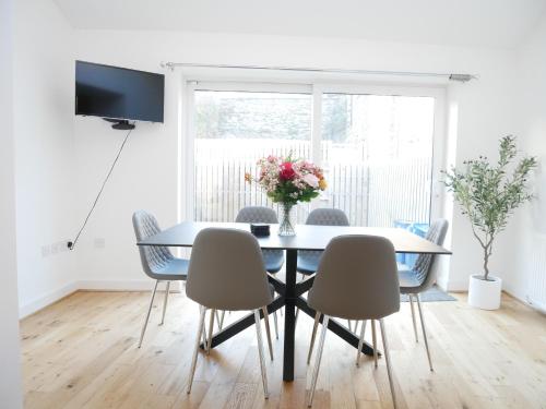 这家度假屋配备4间卧室、带冰箱和洗碗机的厨房以及2间带淋浴设施、吹风机和洗衣机的浴室。这家度假屋还提供平板电视、休息区以及2间带浴缸的浴室。
