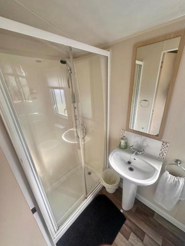Two Bedroom Willerby Parkhome in Uddingston, Glasgow位于阿丁斯顿,提供露台,距离凯尔特人公园球场有10公里,距离汉普登公园球场有13公里,距离格拉斯哥中央火车站有15公里。这家住宿距离克里斯·霍伊爵士自行车馆有8.9公里,提供花园和免费私人停车位。