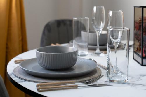 这家1卧室公寓提供起居室、平板电视、带冰箱和烤箱的设施齐全的厨房以及1间带吹风机的浴室。这家公寓还配备洗衣机以及1间带浴缸的浴室。