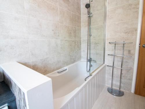 这家度假屋提供2间卧室、带烤箱和微波炉的设施齐全的厨房以及1间带淋浴设施和吹风机的浴室。这家度假屋还配备平板电视、休息区以及1间带浴缸的浴室。