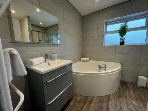 这家4卧室度假屋配有起居室、电视、带冰箱和洗碗机的设施齐全的厨房以及2间带浴缸的浴室。这家度假屋也拥有2间浴室。