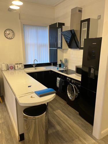 这家公寓配有1间卧室、平板电视、带冰箱和洗碗机的设施齐全的厨房、洗衣机以及1间带浴缸的浴室。这家公寓也提供1间浴室。