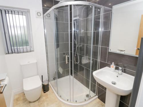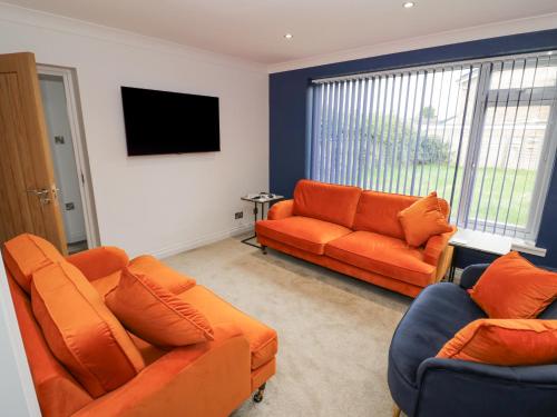 这家度假屋配有3间卧室、带冰箱和洗碗机的厨房、电视、休息区以及2间带淋浴设施的浴室。这家度假屋也拥有2间浴室。