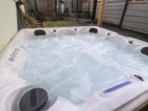 这家度假屋配备3间卧室、带冰箱和洗碗机的厨房以及2间带淋浴设施、吹风机和洗衣机的浴室。这家度假屋还提供电视、休息区以及2间带热水浴池的浴室。