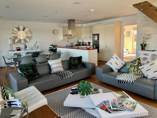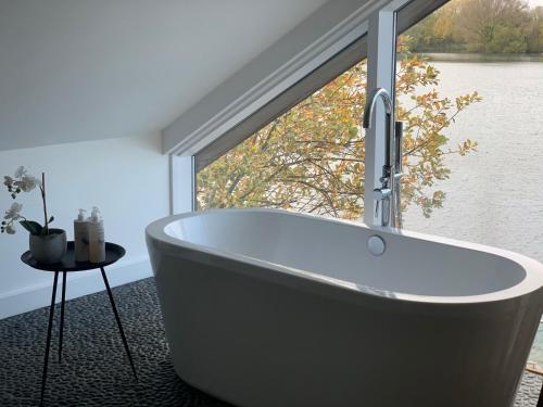 这家度假屋享有湖景,提供庭院,配有4间卧室、起居室、有线频道电视、设施齐全的厨房以及4间带热水浴池和浴缸的浴室。4间浴室提供免费洗浴用品。