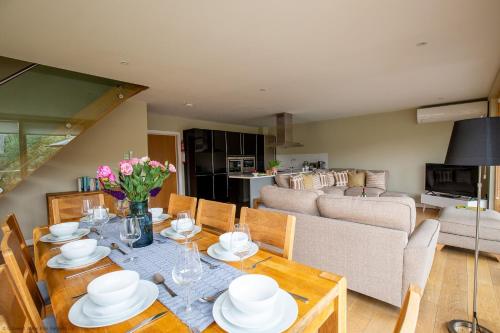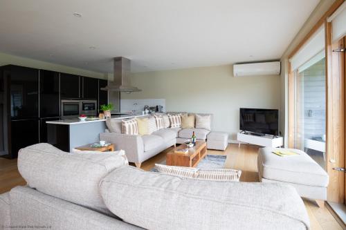 这家度假屋享有湖景,提供庭院,配有4间卧室、起居室、有线频道电视、设施齐全的厨房以及3间带热水浴池和浴缸的浴室。3间浴室提供免费洗浴用品。