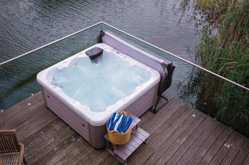 这家度假屋享有湖景,提供庭院,配有4间卧室、起居室、有线频道电视、设施齐全的厨房以及3间带热水浴池和浴缸的浴室。3间浴室提供免费洗浴用品。